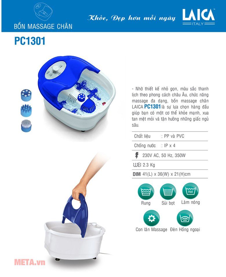 Nhờ thiết kế nhỏ gọn, màu sắc thanh lịch theo phong cách châu Âu, chức năng massage rung / sủi mạnh, đèn hồng ngoại và làm nóng nước nhanh chóng, bồn massage chân LAICA PC1301 là sự lựa chọn hàng đầu giúp bạn có một cơ thể khỏe mạnh, xua tan mệt mỏi và tận hưởng những giấc ngủ sâu.\