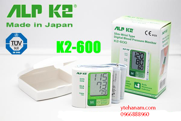 Máy đo huyết áp cổ tay ALPK2 K2-600 là sản phẩm thiết bị y tế của hãng ALPK2. Máy được sản xuất và nhập khẩu trực tiếp từ Nhật bao gồm cả linh kiện và lắp ráp