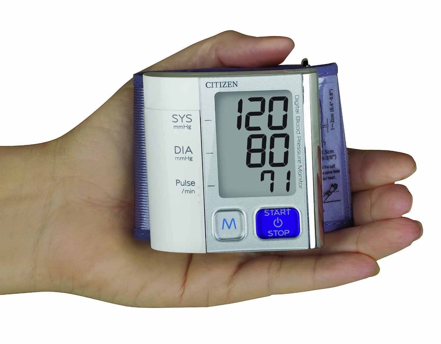 - Máy đo huyết áp điện tử cổ tay CITIZEN CH-657 hiển thị đầy đủ 3 kết quả đo: Huyết áp tối đa, huyết áp tối thiểu và nhịp tim.