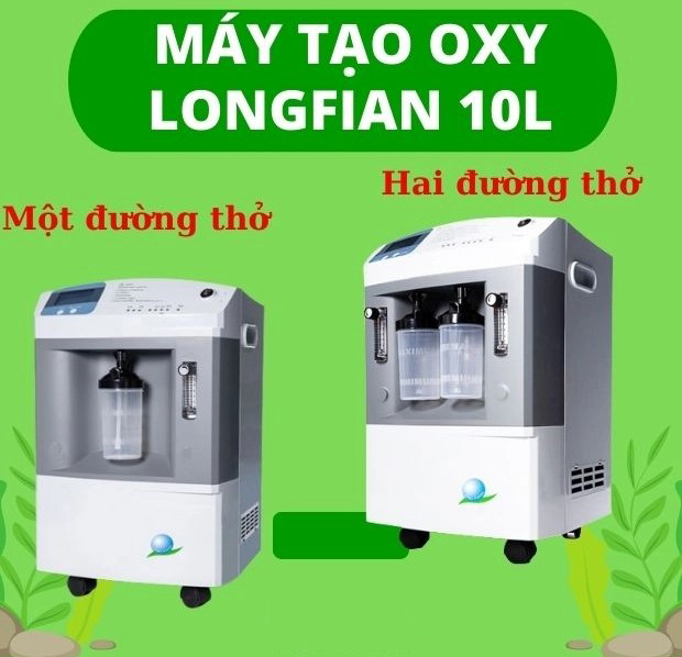 Máy tạo oxy Longfian Jay - 10W có 2 sự lựa chọn là máy 1 đầu ra (1 bình làm ẩm) và 2 máy đầu ra dùng cho 2 người ( 2 bình làm ẩm).