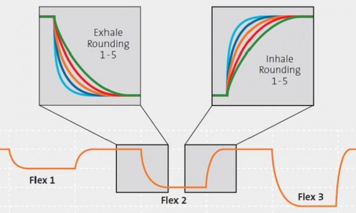 Flow rounding - vòng làm tròn là một công nghệ được cấp bằng sáng chế từ DeVilbiss Healthcare cho phép chuyển đổi từ áp suất thở máy (IPAP) sang áp suất thở ra (EPAP).