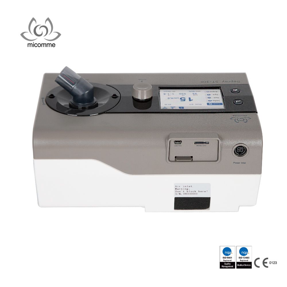 Máy trợ thở Micomme BPAP ST-30F Giải pháp thông minh cho điều trị COPD (tắc nghẽn phổi mãn tính ) Máy trợ thở Micomme ST-30F cung cấp liệu trình thông khí 2 áp lực dương thở ra hít vào qua mask chụp, không xâm lấn ,điều trị suy hô hấp và mất ngủ , chứng ngưng thở khi ngủ . Công nghệ nâng cao hiệu quả điều trị , trải nghiệm công nghệ hỗ trợ thở thoải mái, ST-30F đảm bảo người sử dụng có một thiết bị hiệu quả cao dễ sử dụng , dễ dàng theo dõi các thông số với màn hình lớn có bộ nhớ trong và bộ nhớ thẻ gắn thêm
