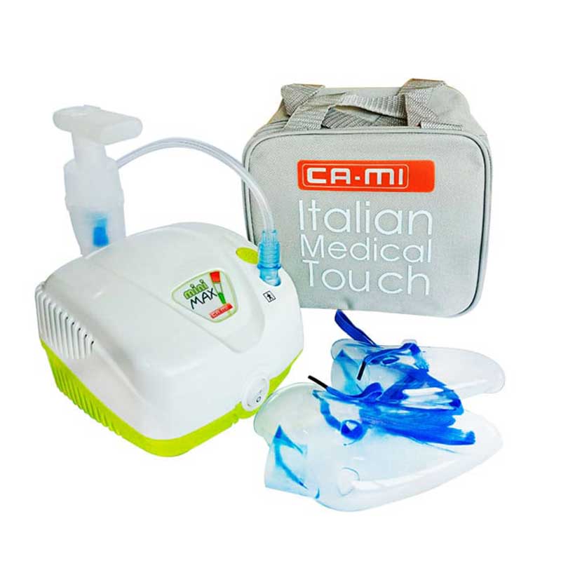 Máy xông khí dung Ca-mi Mini-Max giúp đưa thuốc dạng dung dịch chuyển thành dạng hơi để hấp thụ vào trong phế quản qua đường mũi miệng . dưới áp lực khí của động cơ tạo ra tác động vào cốc đựng dung dịch thuốc đựng trong cốc thốc sẽ biết thành dạng hơi hấp thụ vào mũi miệng qua càng mũi, càng miệng hoặc mask chụp mũi miệng . Pitton của máy thiết kế với độ bền cao không càn bảo dưỡng có thể chạy liên tục .máy được bảo hành 3 năm chính hãng , sản xuất tại Italia, có túi sách chứa máy , máy nhỏ gọn động cơ khỏe và bền bỉ , chạy êm .