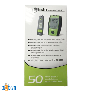 Máy đo đường huyết loại nào sử dụng que thử loại đó. Que thử đường huyết Uright TD 4267 và TD 4265 chuyên dùng cho máy đo đường huyết Uright 4265 và TD 4267 một hộp gồm 50 que thử, được đóng gói rời từng chiếc một, do đó loại bỏ hoàn toàn khả năng bị ảnh hưởng bởi không khí và độ ẩm, thuận tiện cho việc sử dụng và đảm bảo thời hạn sử dụng tối đa.
