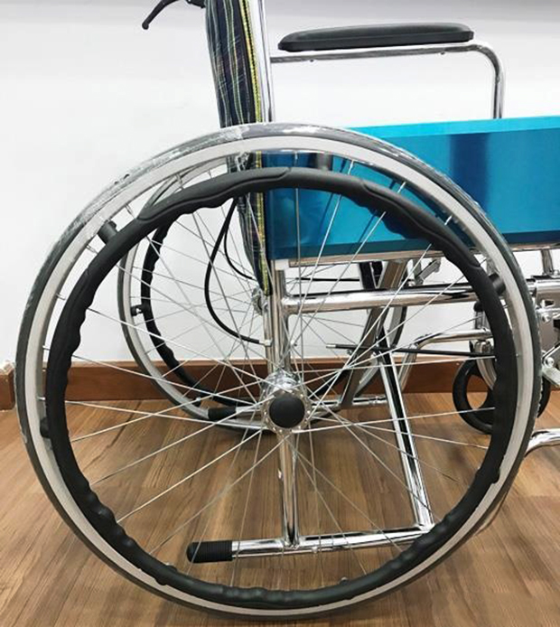 Xe có thể được di chuyển bằng cách lăn 2 bánh sau, do bệnh nhân tự điều khiển hoặc người nhà có thể đẩy bằng tay cầm phía sau.